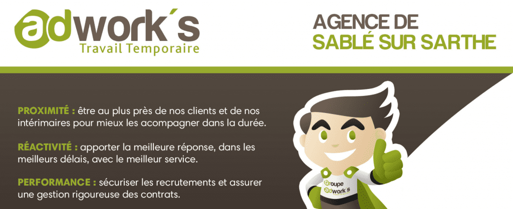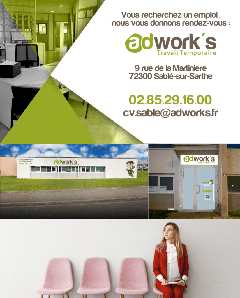 L’agence de Sablé-sur-Sarthe fait partie de cette enseigne reconnue pour sa capacité à répondre aux besoins des entreprises locales en matière de recrutement. Adwork’s offre une solution de travail temporaire flexible et réactive, en mettant en relation des entreprises de divers secteurs avec des intérimaires qualifiés.