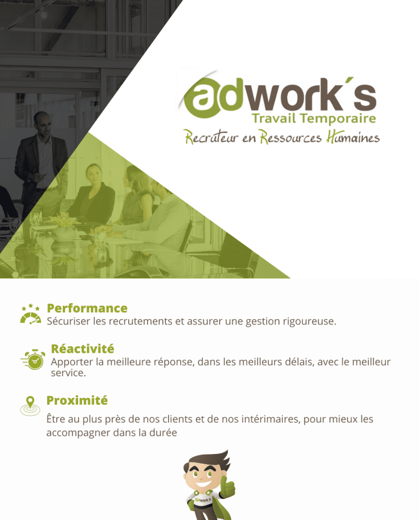 Adwork’s est une entreprise spécialisée dans le travail temporaire, présente à travers un large réseau d’agences en France.